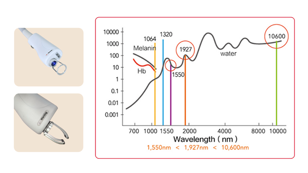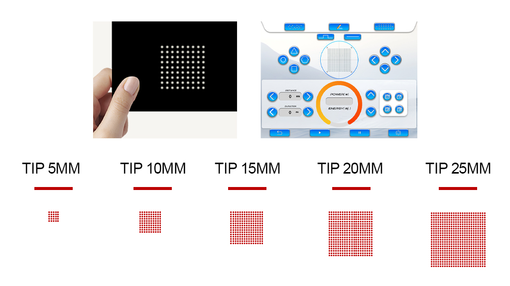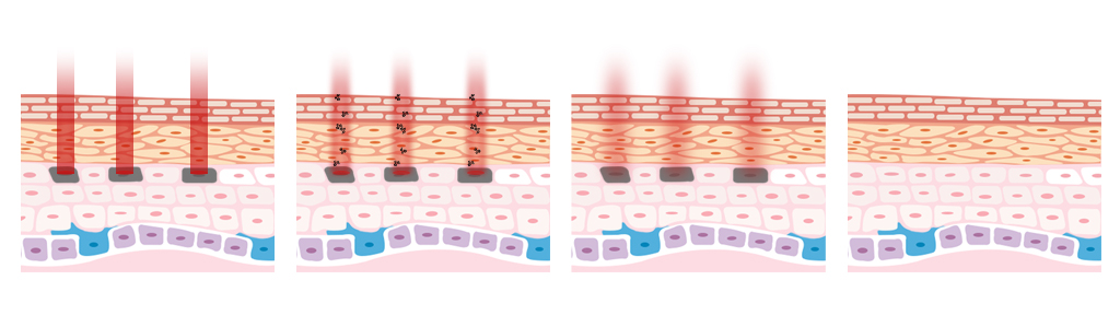 -1927 The laser acts on watermolecules in the skin in alattice pattern.After the water moleculesabsorb the laser, the stratumcomeum is vaporized (mechanical damage), andthe dermal tissue is reversiblethermal damage.