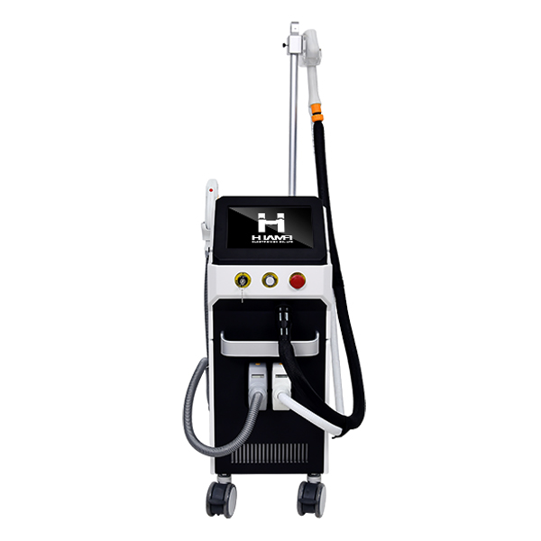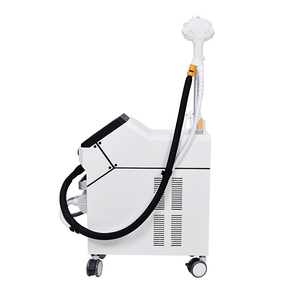 It is equipped with two handles, one is a DPL handle and the other is a professional cooling handle. DPL(Precision pulsed light) is a kind of color light with high energy, broad spectrum, various wavelength, which could effectively penetrate epidermis to dermis. This light could reach different layers of skin, and absorbed by targeted tissue. It does not require gel, and the cold air blown before, during, and after treatment protects the skin.